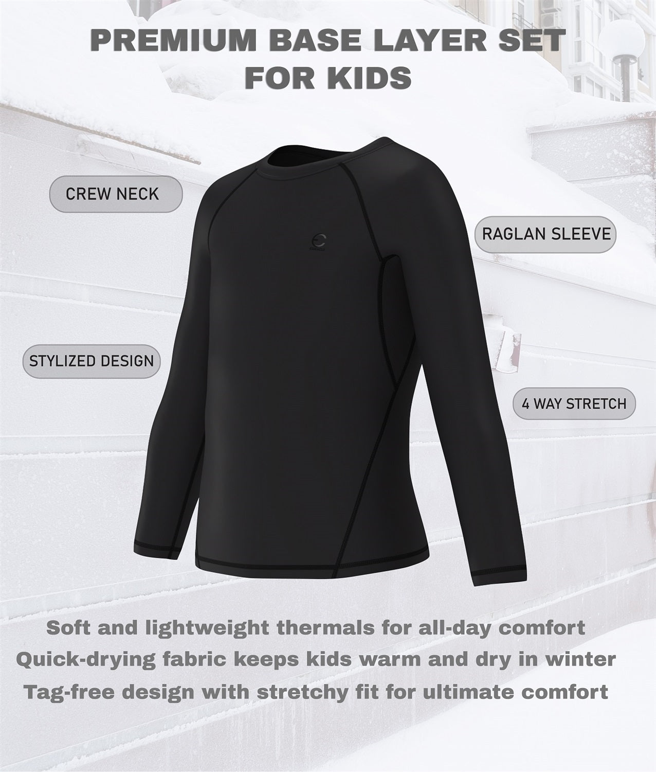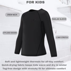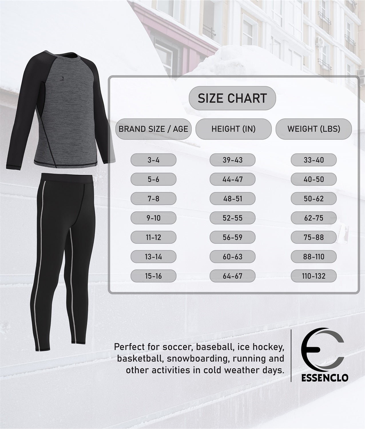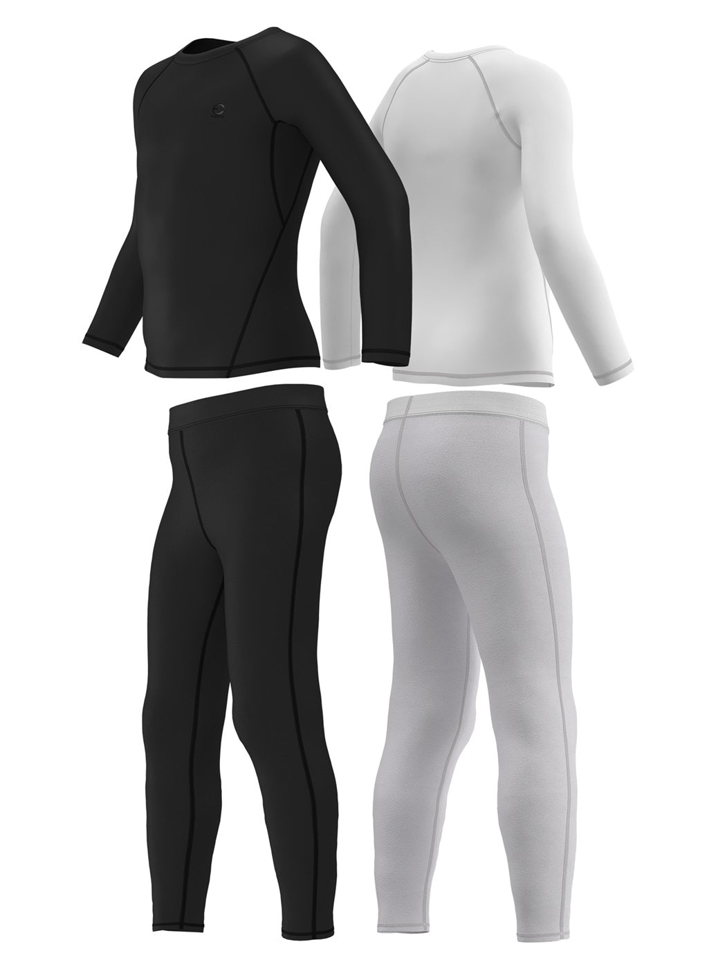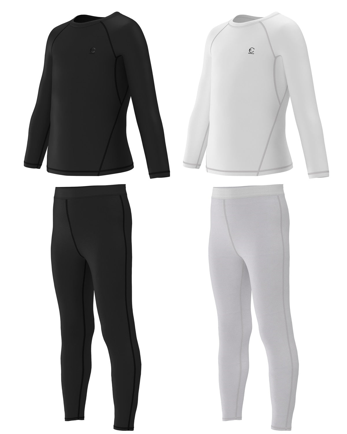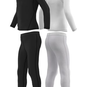 The Essenclo Boys’ Compression Pants and Shirts Set is the perfect youth activewear base layer solution for active kids. offering a 4-piece compression set that includes (2) long sleeve compression tops and (2) matching compression pants. Crafted from a soft blend of 88% Polyester and 12% Spandex. this set is both lightweight and breathable. ensuring all-day comfort whether your child is on the field or relaxing at home. With advanced moisture-wicking technology. the fabric keeps sweat away from the skin. helping your child stay dry and focused during intense activities. The flatlock seams reduce friction and prevent irritation. providing a snug and comfortable fit for any sport. Versatile and practical. this base-layer set is ideal for a wide range of sports and activities. making it an essential addition to your child’s athletic wardrobe.